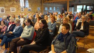 Die Pause nutzen die Veranstalter zur Ziehung der sechs Gewinnerlose, denn jede Eintrittskarte ist gleichzeitig ein Los. Unter Aufsicht des diesjährigen Autors und Petra Steinmetz (Südpfalz-Tourismus) darf Martina S. Martin die Glücksfee sein. Vier Buchpreise und zwei „hausgebackene“ Mühlenbrote gehen an Besucher aus Bellheim und der näheren Umgebung, ein Preis sogar an eine Dame aus Lachen-Speyerdorf.