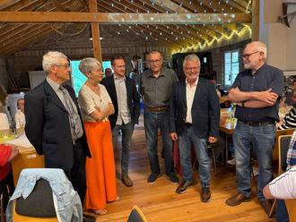 Unser Präsident Dr. Klaus Sarnecki begrüßt unseren Ortsbürgermeisters Paul Gärtner + Beigeordneter Sebastian Kraus am Samstagabend im Alten Sägewerk - mit dabei aus Frankreich: Jean Louis Baron, Marie Pierre Contrel und Serge Dovillez