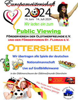Die Fördervereine der Feuerwehr und Oldtimerfreunde laden zum Puplic Viewing für die Spiele mit deutscher Beteiligung in die Oldtimerscheune herzlich ein.