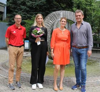 v.l.n.r.: Markus Seither (Ausbildungsleiter), Lena Wagner, Eva Herzog (Büroleiterin), Gerald Job ( Bürgermeister)
