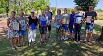 Vergangenen Samstag ehrte der TVO langjährige Mitglieder. Bei einem kleinen Sektempfang und Imbiss am Clubheim wurden die silberne Ehrennadel für 25-jährige Mitgliedschaft, die goldene Ehrennadel für 40-jährige Mitgliedschaft und der Ehrenbrief für 50-jährige Mitgliedschaft verliehen. Für 50 Jahre Mitgliedschaft in Verbindung mit vielen Jahren verdienstvoller Arbeit rund um den TVO wurde Marion Seibel zum Ehrenmitglied ernannt.