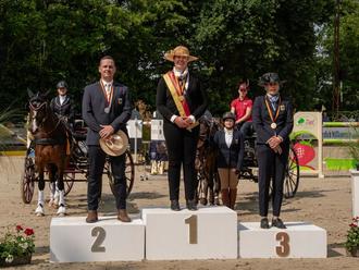 Die neuen Deutschen Meister der Einspänner Pferde (von links nach rechts): Jens Motteler, Anika Geiger, Claudia Lauterbach