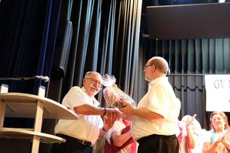 Zum Finale sang der gemischte Chor „Weit, weit weg“ sowie den Titel „Orinoco flow“. Danach ging es noch einmal pfälzisch zur Sache. Dabei waren alle im Saal Versammelten zum Mitsingen eingeladen. Ob bei dem Lied „Bring mich häm in die Pfalz“ oder „Zwischen Rhein und Reben“, jeweils mit Texten von Bernd Greiner und bekannten Melodien, sangen die Anwesenden kräftig mit. Auch das gemeinsam gesungene Volkslied „Kein schöner Land“ sowie die Europahymne, die mit drei auf die Pfalz zugeschnittenen Strophen von Bernd Greiner textlich ergänzt wurde, kamen beim Publikum sehr gut an.