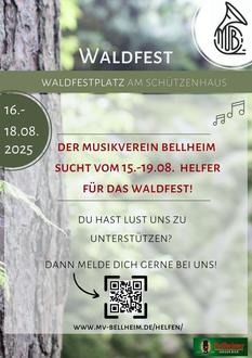 Du möchtest uns beim Waldfest vom 15. bis 19. August unterstützen? Dann bist du hier genau richtig! Wir suchen engagierte Helferinnen und Helfer für verschiedene Aufgaben rund um unser Fest. Egal, ob du beim Auf- oder Abbau, an den Ständen oder einfach dort, wo gerade Hilfe gebraucht wird, unterstützen möchtest – jede helfende Hand ist herzlich willkommen!