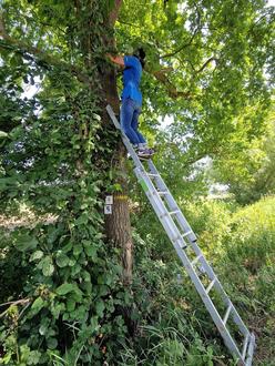 Unterstützung bekamen die Zeiskamer Naturschützer dankenswerterweise durch den Fledermausspezialisten Wolfram Blug aus Rülzheim, der wertvolle Tipps zum richtigen Standort von Fledermausquartieren geben konnte.