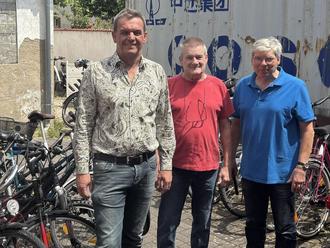 Wolfgang Jöckle nahm die Fahrräder stellvertretend für den Helferkreis entgegen. Stephan Wehbring, der sich innerhalb des Helferkreises um Reparaturen kümmert, machte die Räder wieder verkehrstauglich.