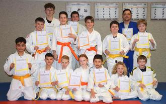 Die erfolgreichen Prüflinge mit ihrem neuen Gürtel und der Urkunde