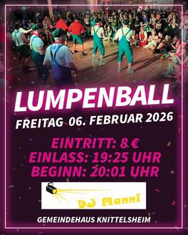 Bald ist es wieder so weit und der Lumpenball öffnet am Freitag, den 06.02. um 19:25 Uhr seine Tore. Ab 20:01 Uhr wird dann DJ Manni für beste Unterhaltung sorgen. Natürlich dürfen auch die Tanzauftritte nicht fehlen und wir freuen uns, dieses Jahr vier Gruppen begrüßen zu dürfen! Die TuS-Mädels geben hierbei ihre Premiere. Es folgen die Ranzen-Garde mit den Altmeistern und Koryphäen des Tanzsports aus Knittelsheim. Danach werden euch die Ottersheimer Trampeltänzerinnen einheizen und den Abschluss bildet "Volles Roar" - die Tanzgruppe der Aktiven Herren.