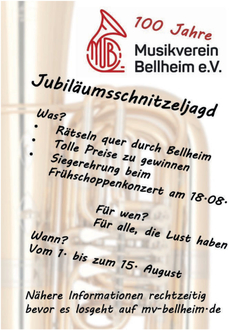 Der Musikverein Bellheim lädt anlässlich seines 100. Geburtstages Groß und Klein zu einer Schnitzeljagd ein.