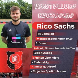 Wer sind eigentlich unsere Neuzugänge? Was machen sie beruflich und welche Position spielen sie? Das alles erfährt ihr ab heute, in unserer Vorstellung der Sommerneuzugänge. Heute: Rico Sachs, kommend vom FC Bavaria Wörth.