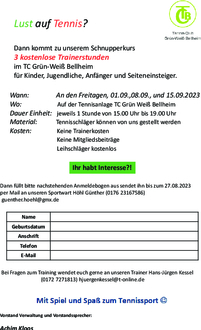 Bei der Tennisolympiade (Neuanfänger) belegte Thia Klaus den ersten Platz, Thaddeus von Süsskind den zweiten Platz und Marla Hauck den dritten Platz.