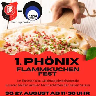 Zum ersten Heimspiel unserer aktiven Mannschaften veranstaltet der FC Phönix Bellheim sein 1. Phönix Flammkuchenfest im Franz Hage Stadion. Am Sonntag, den 27. August 2023, steht für unsere 1. und 2.Mannschaft am 3. Spieltag der neuen Spielzeit das erste Heimspiel an.