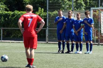 Milo Lutscher (Rot) steht bereit zur Ausführung des Freistoßes!