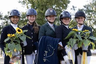 Erfolgreiche Reiterinnen des RFV Zeiskam bei den Pfalzmeisterschaften 2024 (v.l.n.r.): Jaya Gutheil, Maxine Seiler, Leonie Gross, Nina Wagner und Britt Roth