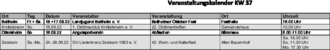 | Ort | Tag | Datum | Veranstalter | Veranstaltung | Ort | Uhrzeit |