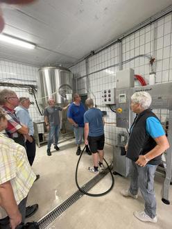 Gestärkt ging es zur nächsten Station nach Ottersheim zum Ottersheimer Bärenbräu. „Ein frisches Helles, Dunkles oder lieber ein Weizen?“ Michael Stein, Pächter des Bärenbräus lud in den schönen Biergarten, wo bereits eine Bank für die Genussradler*innen reserviert war. Nebenbei gab es – mit Blick hinter die Kulissen - eine kurzweilige Einführung in das Brauerhandwerk.