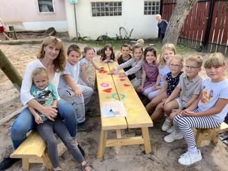Unsere KiTa durfte sich über ein ganz besonderes Geschenk freuen, das uns die ehemaligen Vorschulkinder als Erinnerung an sie geschenkt haben. Eine sehr schöne Holzbankgarnitur, die die Kinder mit viel Fantasie und Kreativität gestaltet haben, darf jetzt unser Außengelände schmücken. Vielen Dank für das tolle Geschenk, die Kinder und die Erzieherinnen haben sich wirklich sehr darüber gefreut. Vielen, vielen Dank auch für die netten und liebevollen Worte, die uns zum Abschied entgegengebracht wurden. Sie gingen sehr zu Herzen und wir werden sie nie vergessen!