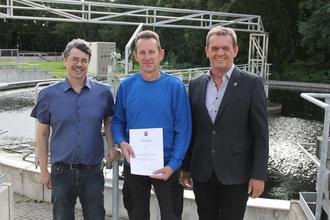 V.l.n.r.: Werkleiter Jochen Renner, Thomas Doser, Bürgermeister Gerald Job