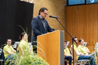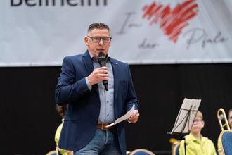 In der festlich geschmückten Spiegelbachhalle begrüßte er neben den Bürgerinnen und Bürgern zahlreiche Ehrengäste, darunter Staatssekretär Andy Becht, Landtagsabgeordnete, Vertreter benachbarter Kommunen, Bürgermeister und Beigeordnete der Verbands- und Ortsgemeinden, die Hoheiten der Verbandsgemeinde, Ehrenbürger, Vertreter der Kirchen, Wehrführer mit Ehrenwehrleiter sowie Ratsmitglieder der Gremien der Ortsgemeinden und Verbandsgemeinde.
