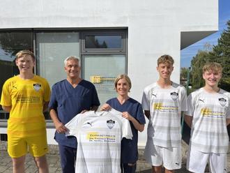 Bei strahlendem Sonnenschein übergaben Dr. Thomas Weber und Dr. Isabell Schädler den Jungs der A-Jugend den Trikotsatz für die neue Saison. Die Mannschaft, die Trainer sowie die komplette Jugendabteilung der JSG Hainbach bedanken sich recht herzlich.