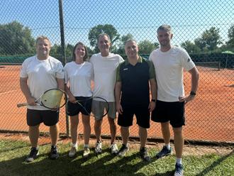 Der FK Mardi nahm mit einer Mannschaft erneut beim diesjährigen Firmen- und Freundeturnier des TC Grün Weiß Bellheim teil. Bei hochsommerlichen Temperaturen erspielten sich Andreas Kopf, Anja Jakob, Michael Christ, Stefano Lisci und Christian Wünstel (Bild v.l.n.r.) den 12. Platz.