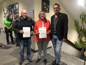 Man muss sich nicht wundern, wenn einige Namen dabei häufiger auftauchen, denn der Kreis derer, die sich alljährlich zur Ehrung zusammenfinden, ähnelt sich in der Besetzung. Die Bestleistung wurde mit 2.444 km von Norbert Stoll aus dem Team FC Köln-Fanclub geradelt. Beste Frau war wieder Gertrud Trapp (siehe Foto), die mit 1.403 km für das Team „KDFB Bellheim“ unterwegs war. Dieses Team erreicht mit seinen 56 aktiven Radler*innen das beste Ergebnis mit 15.812,5 km bei 2.624,8 kg CO2 Ersparnis. Das war eine eigene Gold-Urkunde wert. Nomen est omen: Zweitbestes Team war der RC Silber Pils und das Team Oddersche bekam die Bronze-Urkunde.