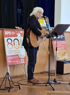 Im Anschluß an den Vortrag traten die 30 Besucher in spannende und lehrreiche Diskussionen ein. Aufgelockert wurde die Veranstaltung zum Feiertag vom Liedermacher Uli Valnion, der zum Teil extra neu gedichtete Liedtexte zu bekannten Melodien vortrug. Die Veranstaltung endete mit dem gemeinsamen Singen der deutschen Nationalhymde. Alle Anwesenden waren sich einig auch im nächsten Jahr wieder eine solche Veranstaltung durchzuführen.