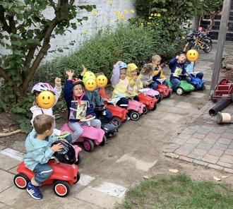 Damit sich die Kinder auch einmal wie echte Rennfahrerinnen und Rennfahrer fühlen konnten, wurde anschließend selbst Gas gegeben. Ein Teil der Gruppe veranstaltete ein Bobbycar-Rennen auf dem Kitagelände. Einige Kinder brachten voller Stolz ihre eigenen Flitzer mit, gestalteten kreative Startnummern - und natürlich durfte ein richtiger Zieleinlauf nicht fehlen. Zum Abschluss gab es für alle Teilnehmenden eine Medaille und eine Urkunde zur Erinnerung an das tolle Rennen.