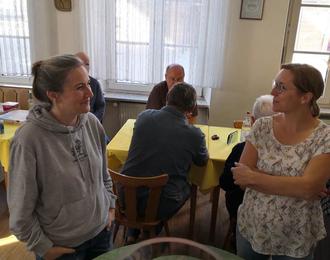 Wir starteten im Sängersaal mit einführenden Tipps für den gesamten Chor durch die Gesangslehrerin Anna Weiss und einem Einsingen mit unserer Chorleiterin Nina Hörner. Danach begann die Probe der Stücke für unser Jubiläumsjahr 2025. Während der Probe hatten immer drei Chormitglieder gemeinsam je 45 Minuten lang die Möglichkeit, im gegenüberliegenden Musikerheim mit Anna Weiss auf individuelle Fragen einzugehen. Sie gab jedem Einzelnen Tipps (z.B. zur richtigen Atmung, zum Erreichen der gewünschten Höhe usw.) und animierte zum Ausprobieren der Tipps in der Chorprobe.