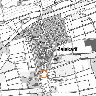 Das Plangebiet befindet sich am südlichen Ortsrand von Zeiskam. Der Geltungsbereich des Bebauungsplans hat eine Größe von rd. 2.500 m² und umfasst die Flurstücke 3080/1, 3082/1 und 3083/1 vollständig sowie 1486/7, 1781 und 1994/36 teilweise. Die genaue Abgrenzung des Geltungsbereichs kann der abgedruckten Plandarstellung entnommen werden.