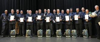 Zählt man die Jahre der 28 zu Ehrenden zusammen, erreicht man knapp 700 Jahre ehrenamtliche aktive Feuerwehrtätigkeit. Geehrt wurden für:
