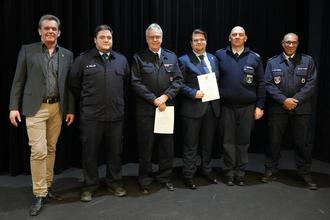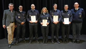 | • | 15 Jahre aktiven Feuerwehrdienst: Kurt Ballmann (O, First Responder), Kai Druck (O), Julian Geitlinger (B), Klaus Hirschel (Z), Dominik Hoffmann (B), Sebastian Müller (B) |
