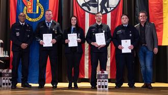 | • | 10 Jahre aktiver Feuerwehrdienst: | Marco Döbele (B), Vanessa Huhle (K), Marcel Kern (B), Dr. Christoph Misch (O-FR) und Laura Stadel (K) |