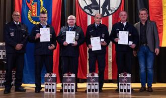 | • | 40 Jahre aktiver Feuerwehrdienst: | Michael Engel (Z), Eric Götz (B), Jochen Humbert (Z), Joachim Kupper (O) und Thorsten Metz (B) |