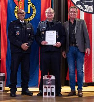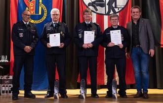 | • | 30 Jahre aktiver Feuerwehrdienst: | Bernhard Bell, (Z), Jürgen Gamber (B) und Frank König (O) |