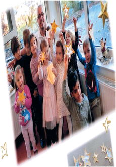 Gemeinsam mit Bewohnerinnen und Bewohnern des Seniorenzentrums haben unsere Kinder Goldsterne ausgeschnitten, mit Transparentpapier beklebt und mit weihnachtlichen Stickern dekoriert. Danach sangen wir zusammen Advents- und Weihnachtslieder.
