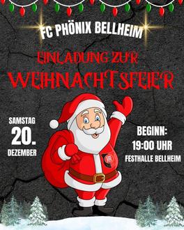 Nach einigen Jahren ist es endlich wieder soweit: Unsere große Weihnachtsfeier der gesamten Aktivität des FC Phönix Bellheim findet am kommenden Samstag, den 20.12.2025 ab 19:00 Uhr in der Bellheimer Festhalle statt!