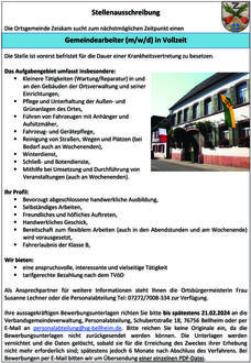 Die Ortsgemeinde Zeiskam sucht zum nächstmöglichen Zeitpunkt einen