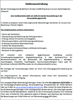eine Sachbearbeiterstelle als stellvertretende Kassenleitung in der Finanzabteilung (m/w/d)