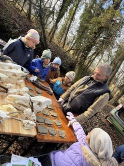Darüber hinaus wurde der Mythos vom bösen Wolf aufgegriffen. Den Kindern wurde erklärt, dass Wölfe Menschen in der Regel nicht angreifen und für uns keine Gefahr darstellen. Meist halten sie Abstand und beobachten uns – wenn überhaupt – nur aus der Ferne. Danach durften alle einen Abdruck einer Tierspur anfertigen, den sie als Erinnerung mit nach Hause nehmen konnten – darüber freuten sich die Kinder sehr. Nach diesem Tag bleibt der Wolf als beeindruckendes Tier im Gedächtnis und wir sind dankbar für die freundliche Unterstützung der „Wolf-Experten”.