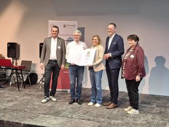 Für die Gemeinde nahmen Ortsbürgermeisterin Susanne Lechner, der 1. Beigeordnete Rainer Hartard, Bürgermeister Gerald Job sowie die Kreisbeigeordnete Anette Kloos die große Urkunde entgegen.