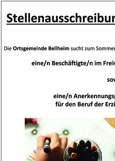 Die Ortsgemeinde Bellheim sucht zum Sommer 2024 für den Schülerhort „IGLUS“