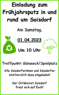 Einladung zum Frühjahrsputz in und rund um Soisdorf