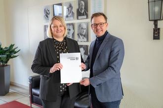 Drei Gruppen mit Platz für bis zu 36 Kinder sind für die unter Dreijährigen entstanden. Erster Kreisbeigeordneter Frederik Schmitt hat nun einen Bescheid über 229.000 Euro an Bürgermeisterin Dana Hauke überreicht. Der Landkreis Fulda hat das Bauvorhaben mit Mitteln aus dem Kreisausgleichsstock unterstützt.