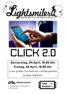Das Jugendtheater "Lightsmilers" der Lichtbergschule Eiterfeld führt am 24./25. April, jeweils um 19:30 Uhr, sein neues, selbst geschriebenes Jugendtheaterstück "Click 2.0" auf.