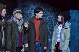 In der Inszenierung von Jona Manow spielen Sam Gerst, Susanne Pfeiffer, Anna Schindlbeck und Jonas Stüdemann. Bühne: Anita Rask Nielsen, Kostüme: Daniela Zepper und Licht: Michael Mannel-Wohlfromm.