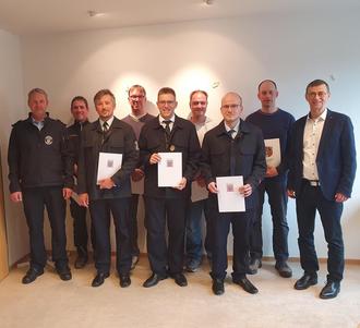 Bürgermeister Hermann-Josef Scheich, Gemeindebrandinspektor Stephan Heimeroth und der stellvertretende Gemeindebrandinspektor Steffen Keller beglückwünschten die Feuerwehrangehörigen und sprachen ihnen ihren Dank für die Arbeit und das Engagement in den Einsatzabteilungen der Freiwilligen Feuerwehren aus.