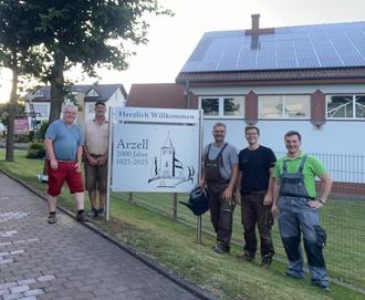 An den Ortseingängen von Arzell wurden die Tage durch Mitglieder des Ortsbeirates die neuen Schilder aufgestellt mit dem Slogan "Herzlich willkommen" und dem Motiv der Kirche und den Jahreszahlen 1025 - 2025, was auf die 1000jährige Geschichte des Dorfes hinweist. Das große Jubiläum soll im nächsten Jahr gefeiert werden, zunächst mit einem Festkommers am 28.03. und einem stehendem Festzug am 24.08.2025. Weitere Veranstaltungen sind bereits geplant, wie ein Chronikabend für die Bürgerinnen und Bürger sowie weitere Interessierte am 29.03.2025, oder in Arbeit. Die verschiedenen Arbeitsgruppen, die zur Vorbereitung gebildet wurden, arbeiten seit mehr als 2 Jahren an der Vorbereitung des Festes. Eingebunden in die Planungen sind auch die Vereine des Ortes und der Kindergarten. Die Chronik, die in der Hand von Willi Gerk lag, ist fertiggestellt und ein Musterexemplar gebunden und gedruckt. Alle Mitbürgerinnen und Mitbürger sind schon jetzt ganz herzlich zu den Veranstaltungen eingeladen.
