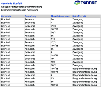 Die Berechtigung zur Durchführung solcher Vorarbeiten ergibt sich aus § 44 des Energiewirtschaftsgesetzes (EnWG). Diese Maßnahme wird mit dieser Anzeige fristgerecht ortsüblich bekannt gemacht. Bitte gewähren Sie unseren Mitarbeitenden Zutritt zu den betroffenen Flurstücken, damit die erforderlichen Untersuchungen durchgeführt werden können.