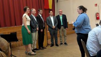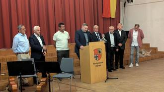 Nach dieser Laudatio folgten mehrere Grußworte: Der Vorsitzende der Gemeindevertretung Heiko Mähler, der auch durch das Programm führte, lobte Scheichs Einsatz, immer für die Marktgemeinde da zu sein. Die feinfühlige und menschliche Art unterstrichen die Fraktionsvorsitzenden Pascal Möller, Thomas Budde und Georg Nophut, der auch einige Parallelen, die ihn besonders mit Hermann-Josef Scheich verbinden, aufzeichnete. Auch Stefanie Klee betonte, dass sie von der Opposition aus gerne mit Bürgermeister Hermann-Josef Scheich zusammengearbeitet hätte. Die Grüße der 10 Freiwilligen Ortsteilfeuerwehren übermittelte Gemeindebrandinspektor Stephan Heimeroth.